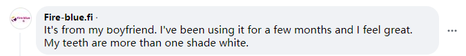 1、 It's from my boyfriend. I've been using it for a few months and I feel great. My teeth are more than one shade white.