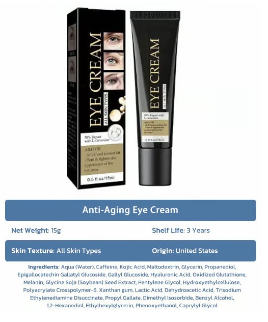 Bags under eyes are caused when the tissue structures and muscles supporting your eyelids weaken. The skin may start to sag, and fat that's usually around the eye can move into the area below your eyes. Also, the space below your eyes can gather fluid, making the area look puffy or swollen. Instant Firming Eye Cream is specially designed for target to reduce the appearance of dark circles and bags under eyes effectively and naturally.