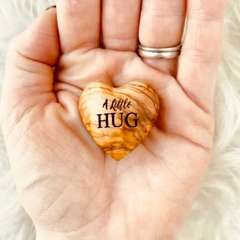 🤗Send a hug to a loved one with a little keepsake heart. A beautiful and tactile little hug to send to someone you are missing.🤗This wooden token is engraved with "A Little Hug/I MISS YOU". The token is 35mm in width, the perfect size for a pocket, purse or handbag so it's there when you need it.