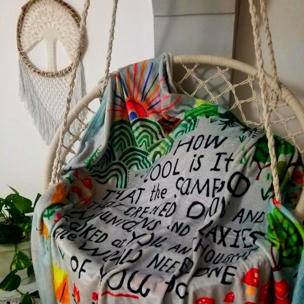 Blanket or Tapestry?! It's both! This Tapestry Blanket is made from the softest material and features bright artwork and an inspirational sentiment with a vintage watercolor look! It’s perfect for snuggling up with a good book, around a camp fire or even just watching your favorite movie on the couch! It looks so cute hung on the wall in a bedroom, living room or even as a workstation backdrop to brighten up your space!