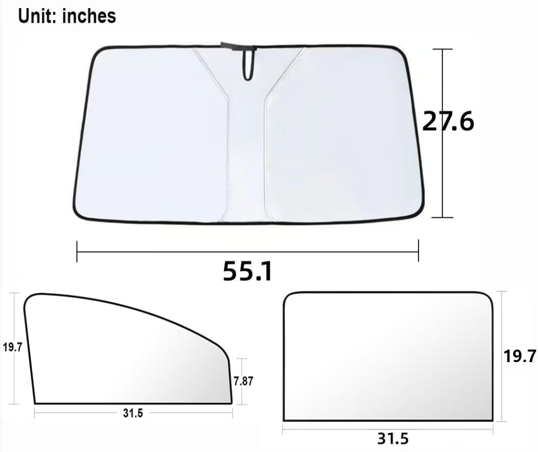 Note: The sunshade panels required for the diagonally opposite side windows are of the same size. The white reflective surface should face outward when installed. Please ensure that the panels are installed on the interior side of the vehicle, not the exterior.
