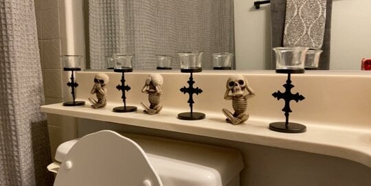 This twist on the classic see, hear, speak no evil is put together with skulls. It has the see no evil, hear no evil, speak no evil skulls, a cool twist on the classic monkeys. This skull piece is a must have for anyone that is into skulls.