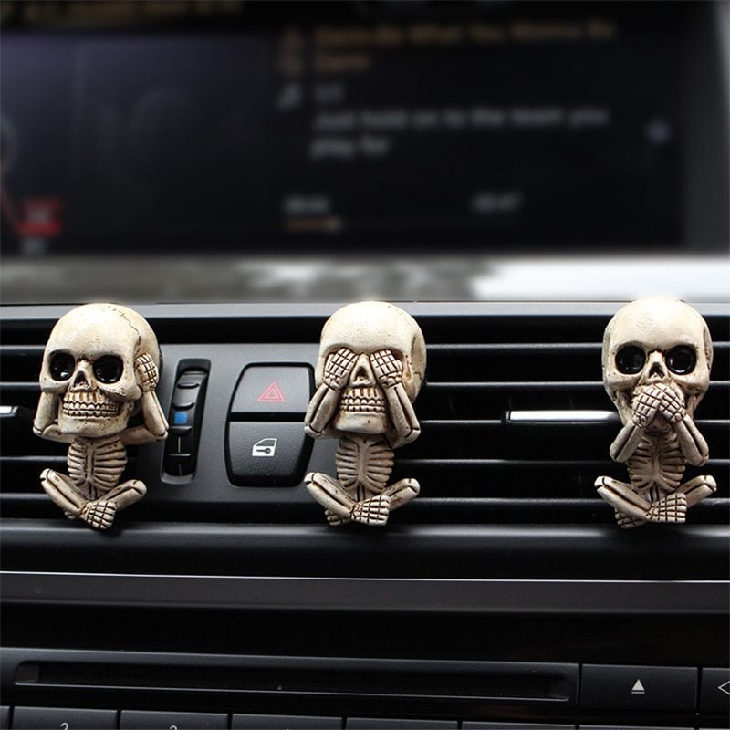 🎉🎉dear customers, Skull Sculptures Set -  See nothing + Say nothing + Hear nothing. It is recommended that you buy 2 sets, one set for your own car, the other set is a good choice whether it is a birthday gift for a friend or to decorate your room.-----Trio of evil skulls with air freshener